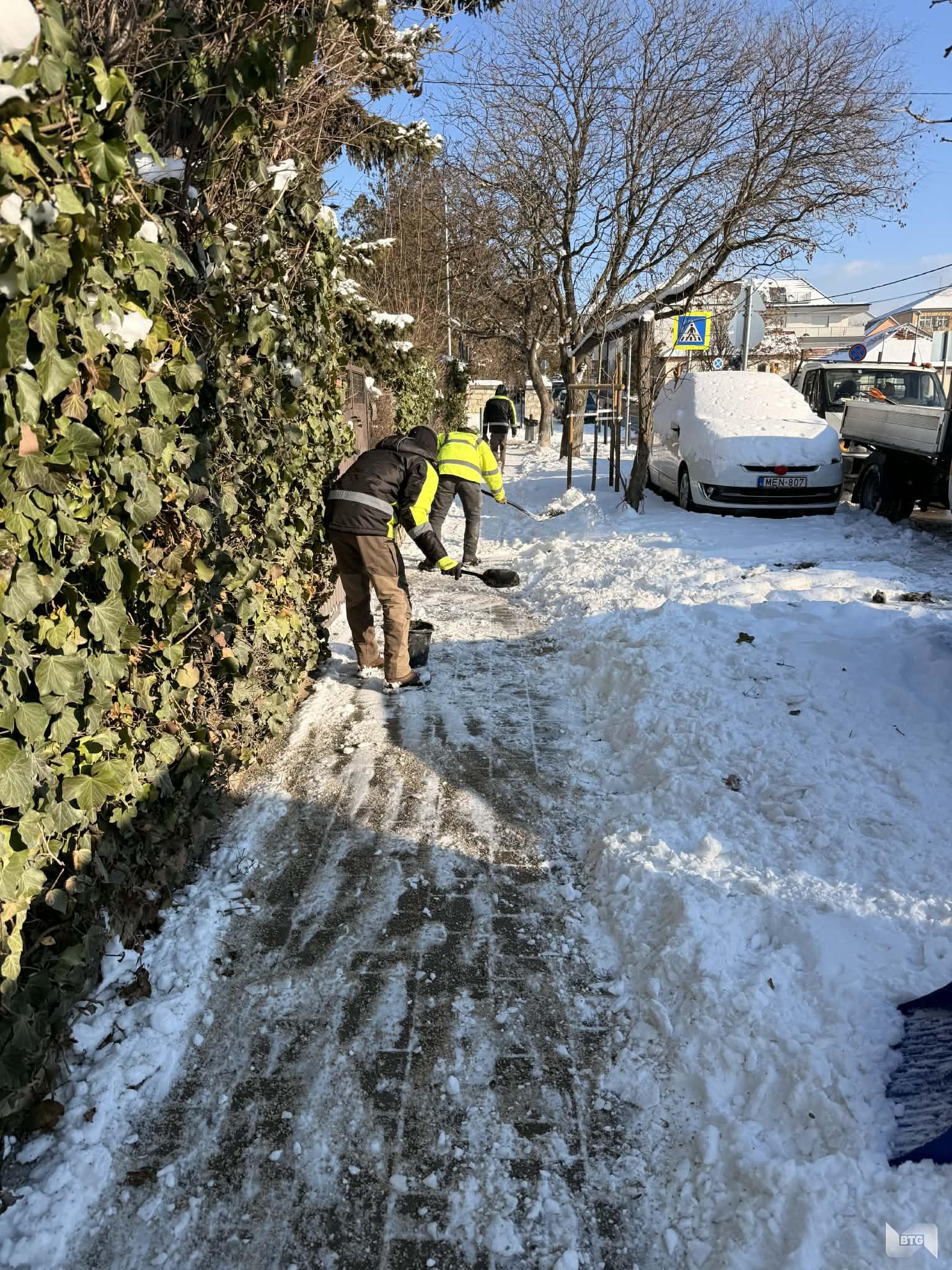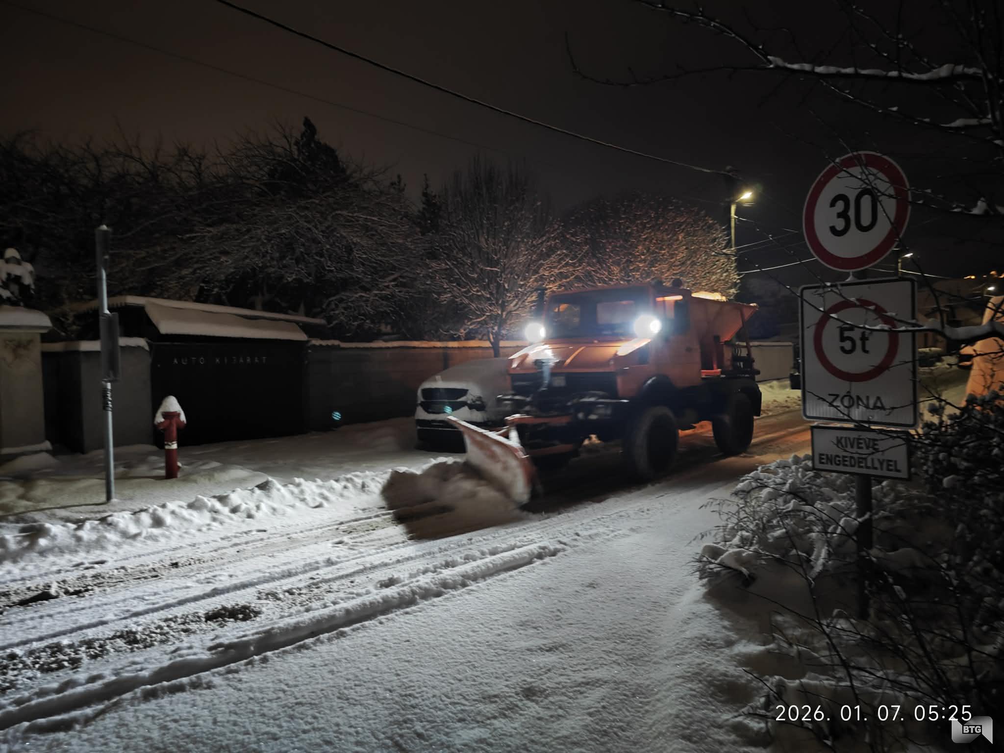 Az elmúlt héten célgépeink és a kézi síkosság mentesítést végző munkatársaink szombat kivételével miden nap dolgoztak, takarították az utak, járdák, buszmegállók, lépcsők, kerékpárutak felületeiről a havat, és összesen közel 1000 tonna szóróanyagot juttattak ki a letisztított felületekre. A ma hajnali havazás miatt fél ötkor ismét munkába állt minden gép és kézi munkaerő.