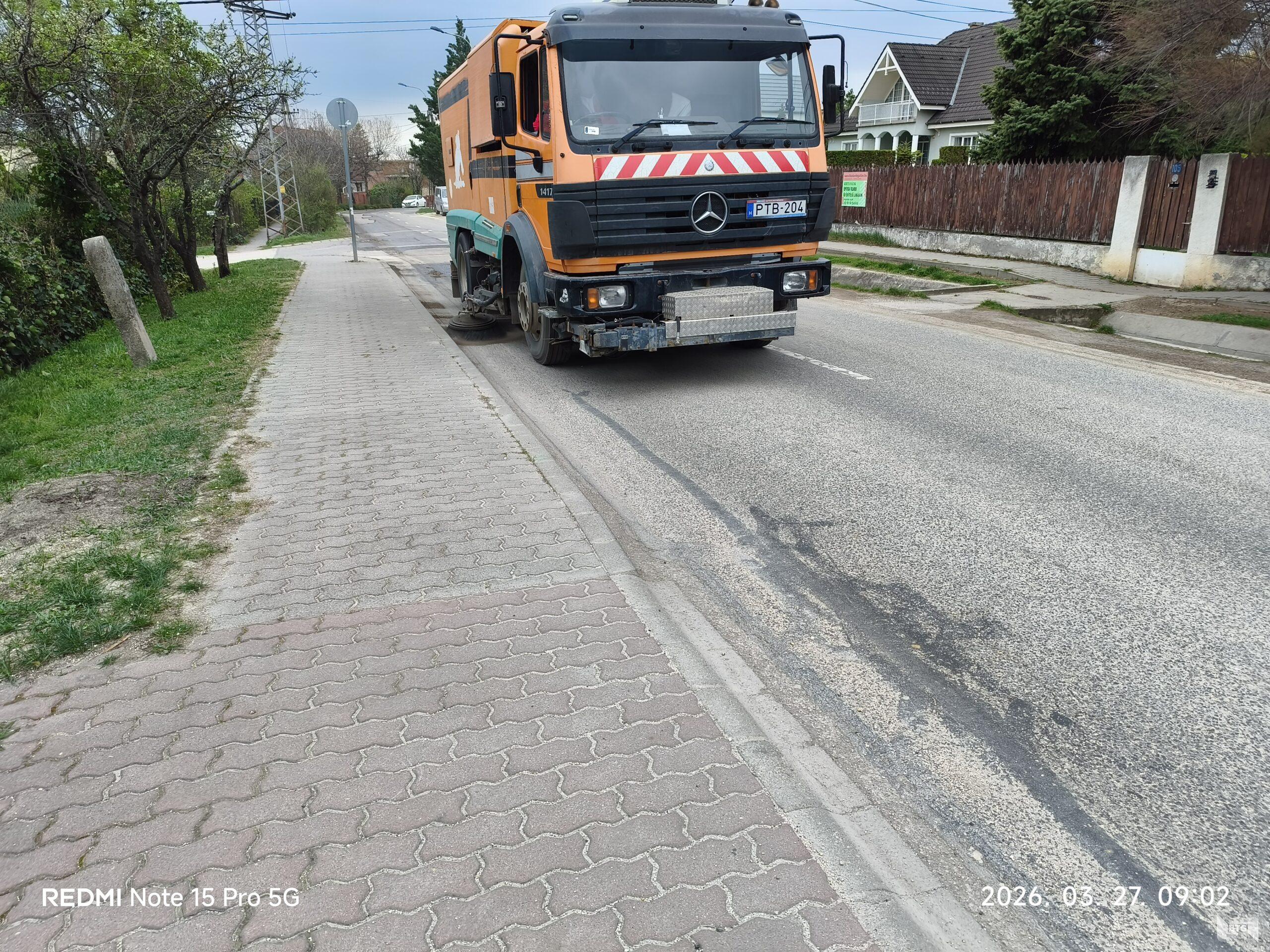 Minden év március hónapjától kezdődően megtisztítjuk az egész várost a síkosság-mentesítést szolgáló anyagoktól, sártól, hordaléktól. Gépi-, és kézi erővel egyaránt dolgoznak munkatársaink.